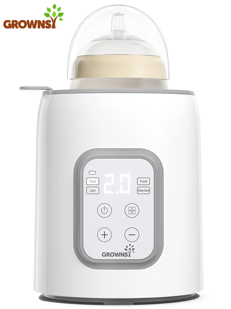 We look for bottle warmers that heat quickly and evenly without fuss, and the Grownsy 5-in-1 delivered. It’s simple to use, reliable, easy to clean, and typically under $50. In our testing, it fit wide Tommee Tippee, Comotomo, and AVENT bottles, plus tall Dr. Brown’s, and handled five core tasks: fast and gentle warming, defrosting, food heating, and sterilizing. It passed all of our tests with flying colors! See our full reviews for strong alternatives from Kiinde Kozii, The First Years, Philips AVENT, Tommee Tippee, Dr. Brown’s, and more.