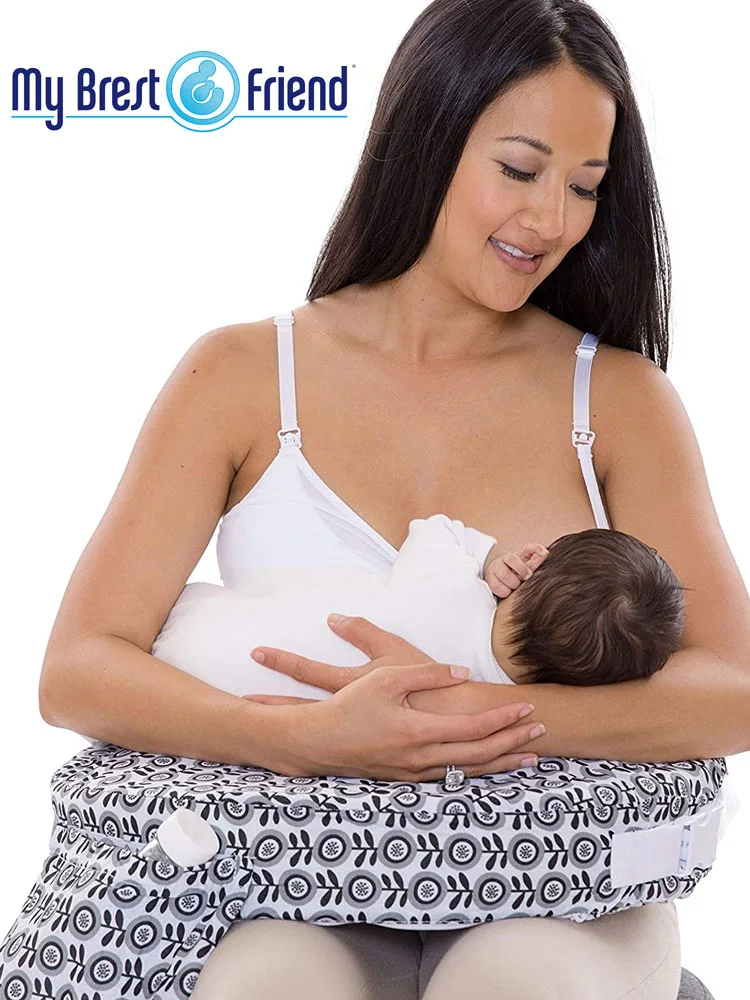 After just a few minutes of holding a newborn, you’ll understand why a good nursing pillow is essential. In our testing, My Brest Friend provided the best support for both breastfeeding and bottle-feeding, with its deep, flat surface, secure and adjustable waistband, and handy storage pocket. The firmness strikes a perfect balance, comfortable for baby while giving your arms and shoulders real relief, and it worked well for parents of many shapes and sizes, including plus-size moms. We highly recommend it!