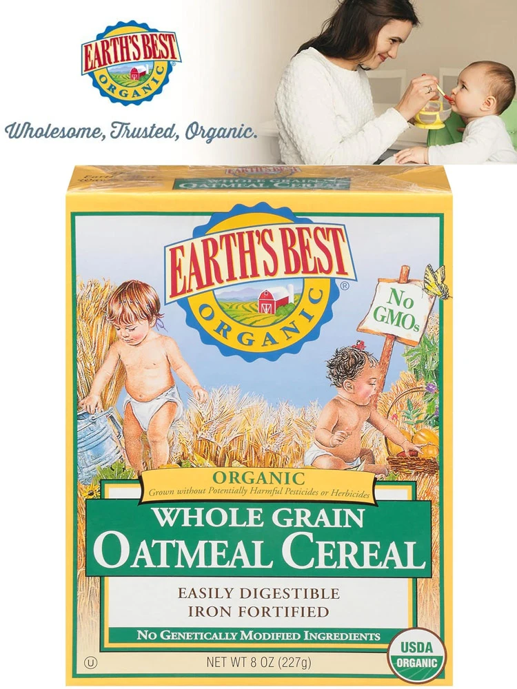 If you want a simple, high-quality first cereal, Earth’s Best is hard to beat. Their organic oatmeal and rice cereals use whole grains and skip the questionable ingredients we avoid, and our top pick is the organic oatmeal (rather than rice, which can contain higher heavy metal levels). In our testing and research, Earth’s Best stood out for strong manufacturing standards, clean ingredients, and mild, baby-friendly flavor. Mixed with a bit of breast milk or formula, it quickly became a favorite first food with our test babies. We also review excellent cereals from Holle, Gerber, and more.